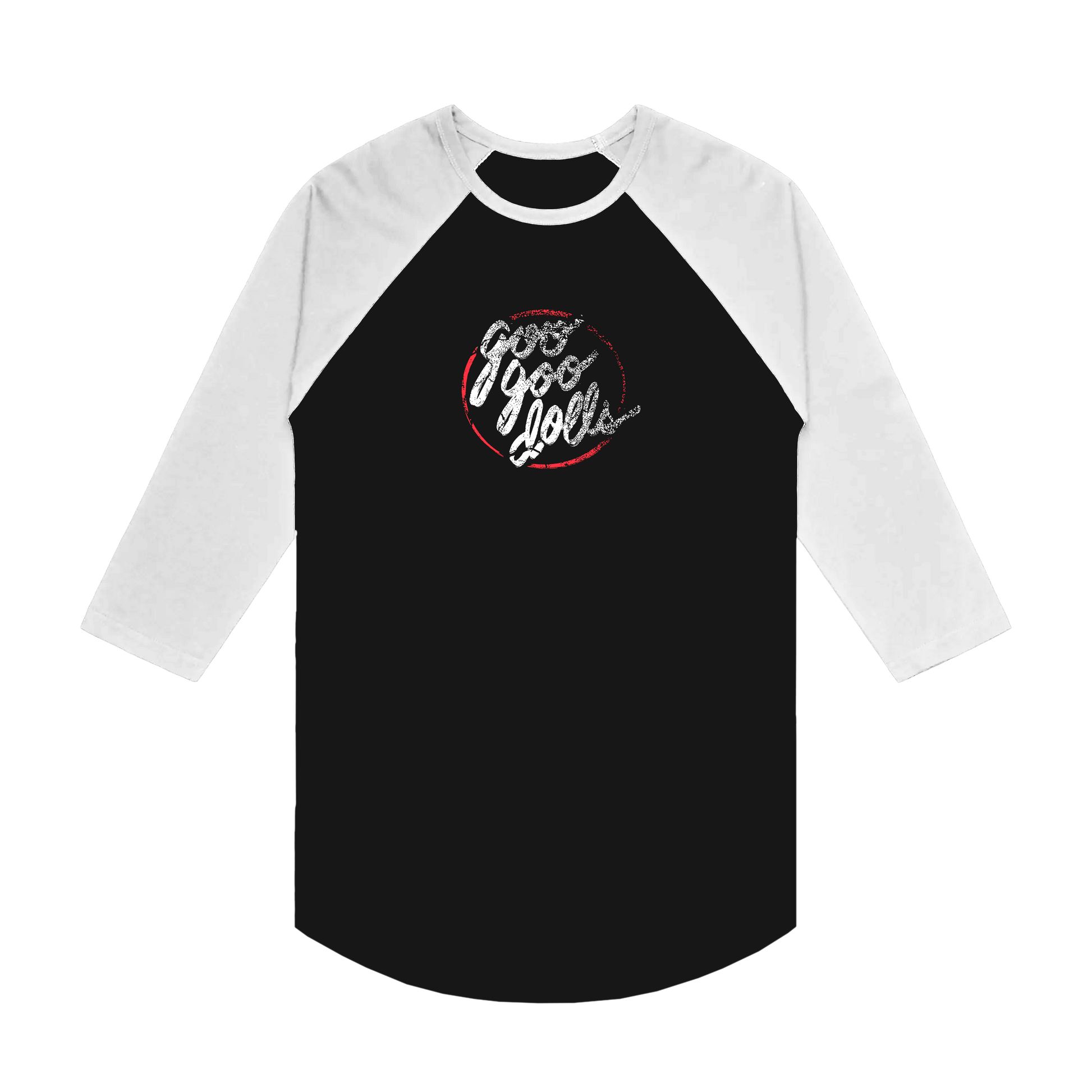 3/4-length sleeve raglan tee with a black body and white sleeves